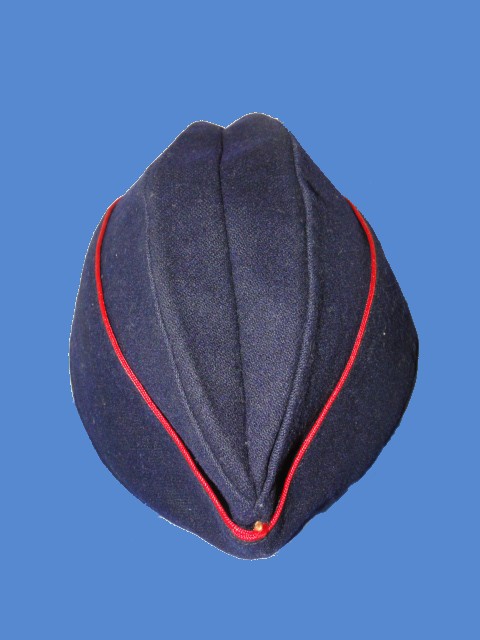 Blue in color with read piping. The front has a patch with the national colors and an eagle. The inside