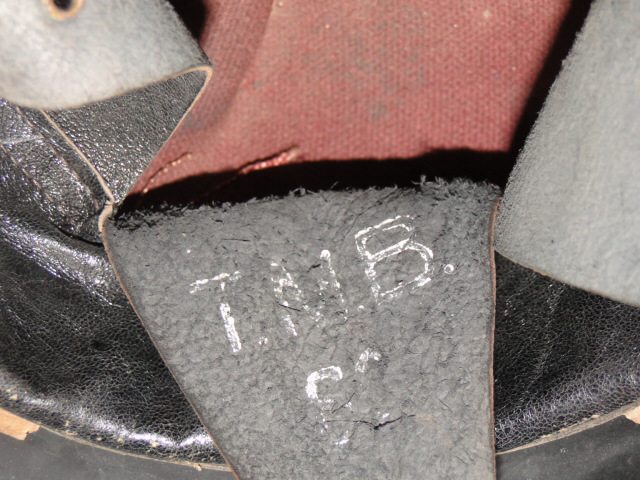 The helmet comes complete with the leather liner and chin strap. A white paint stamp has been applied to the liner.