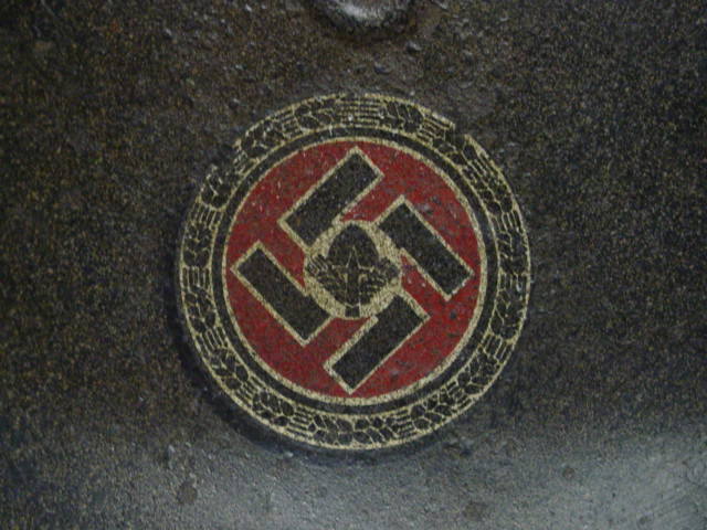 swastika as a means to show support of the Nazi party. The helmet was constructed of a