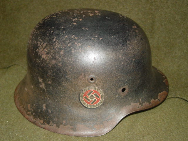 The helmet featured here is a German military M-42 style. As issued during World War Two. In this case