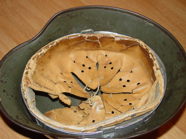 The helmet retains the original leather liner with the aluminum ring frame.  Notice that the