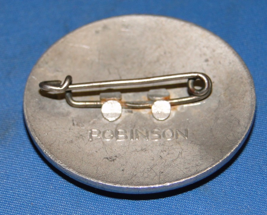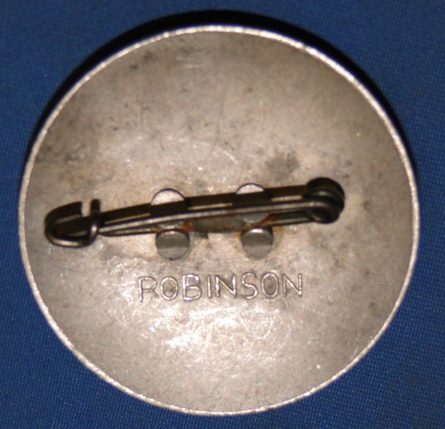 The back is of pin-back design. Manufactured by the Robinson company.