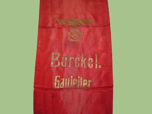 bottom. The political eagle followed by the name Burckel. Gauleiter are written in gold color ink.