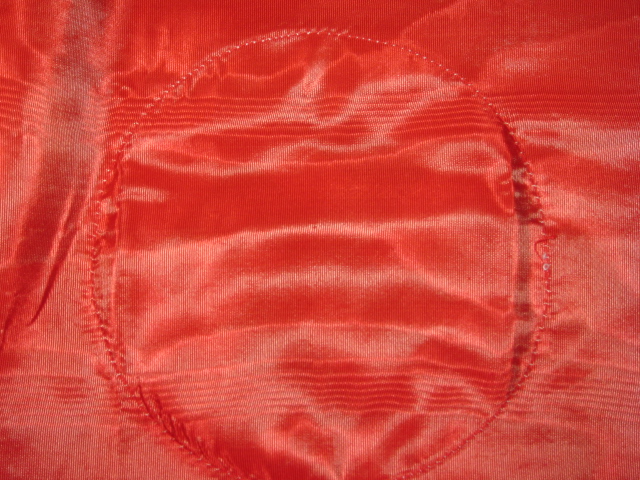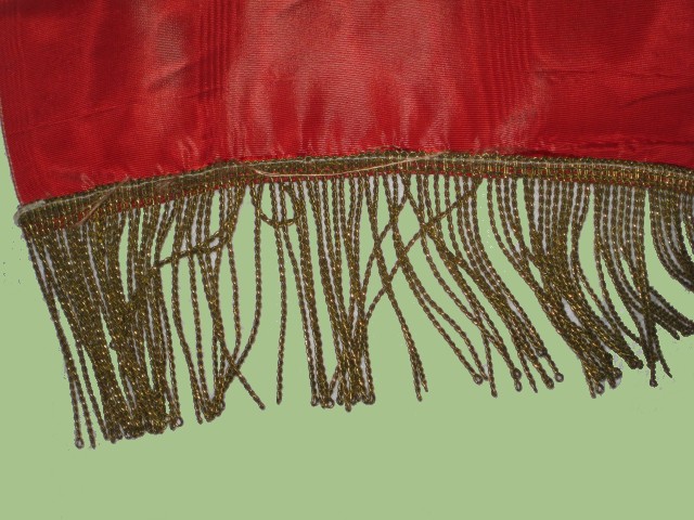 This is a funeral sash sent to the deceased by Joseph Burckel. red color satin construction with fringes at the