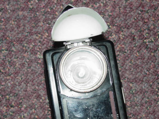 Another interesting design feature is the placement of a hinged concave shield in front of the lightbulb. When