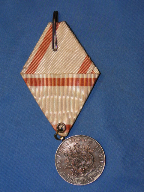 This is a medal awarded to a musician for participating in a band or mucical event. The medal has a diamond shape