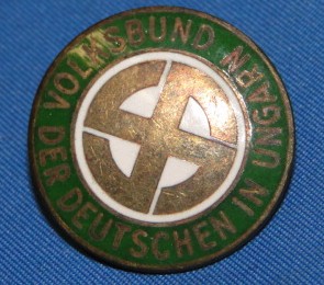 swastika. The edge shows the words "der Deutschen in Ungarn Volksbund" which translates to