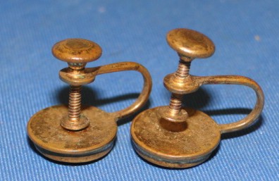 in a brass color. The back of the earrings have a screw wheel. There are no markings on the back of this