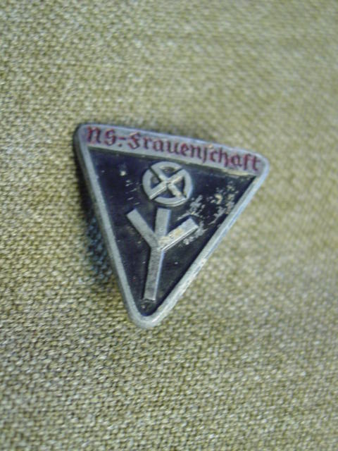 This is a German WWII NSF membership pin. Isused during WWII. Of metal construction, triangular shape, with an
