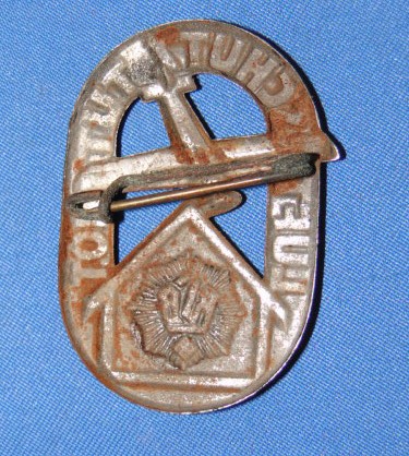 The design consists of a cut-out oval shape with the words "Luftschutz tutnot" applied in relief. The shape
