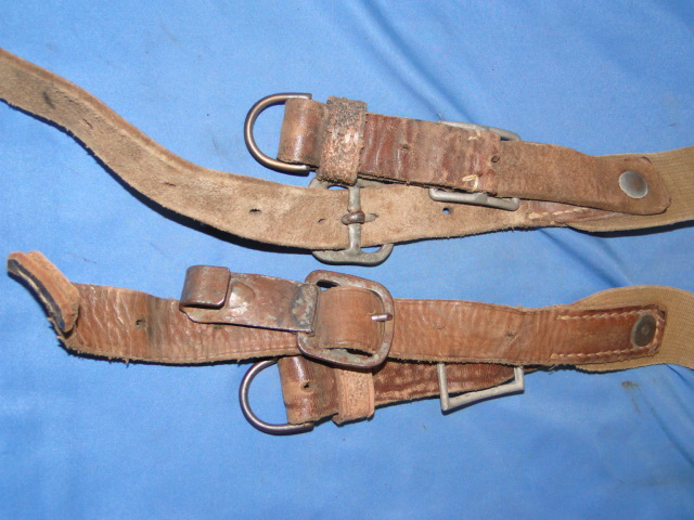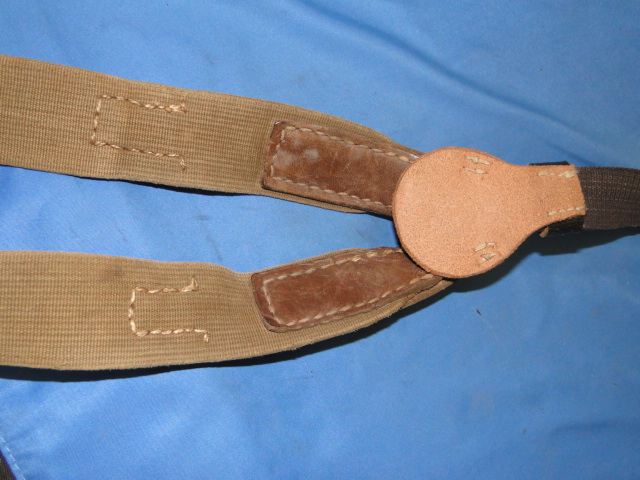 different branches of the service had their own color coding. Heavy duty stitching was applied to the leather components. Hooks on the straps were designed to connect to the leather belt.