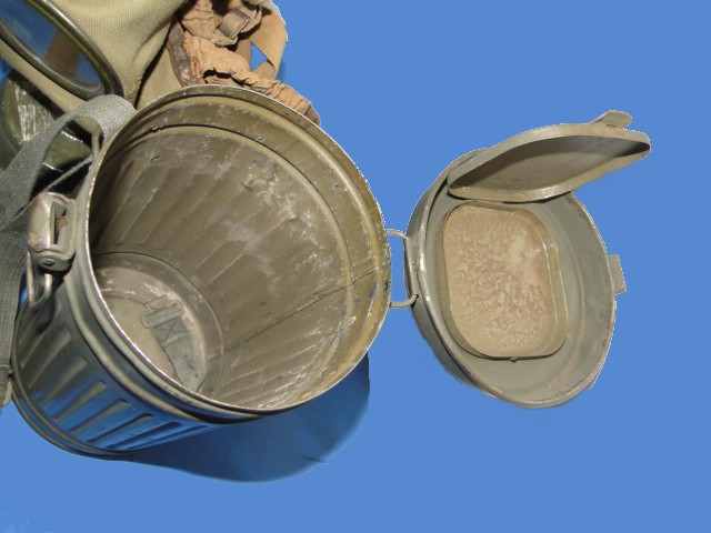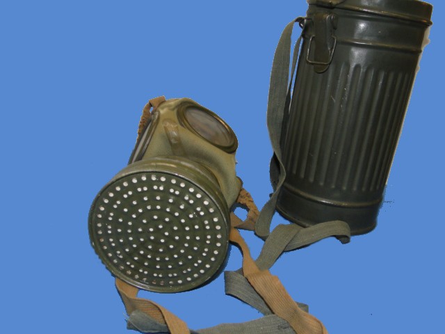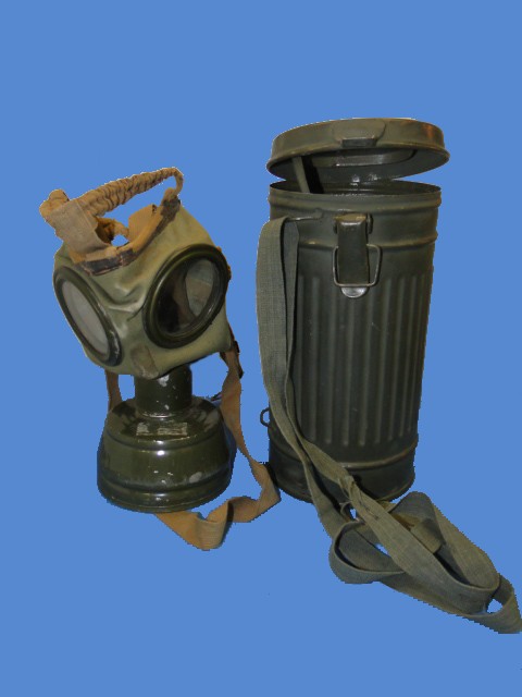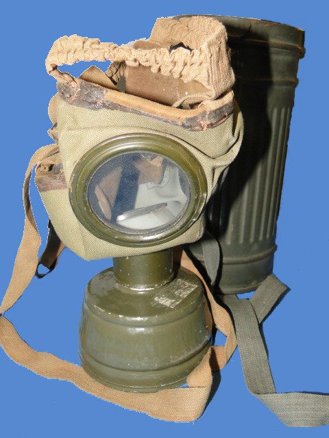 glass eye openings. Elastic straps secure the mask to the soldiers face. The filter is screwed to the