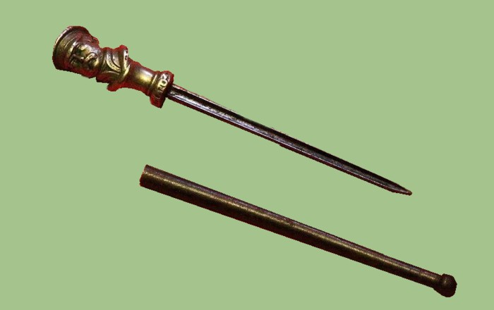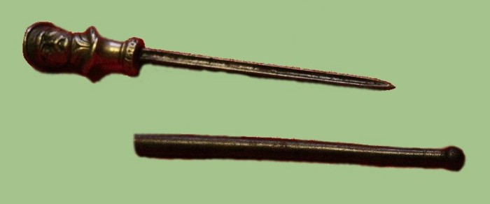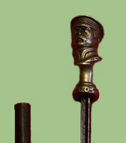 handle made from the a bronze bust of the German Kaiser. The scabbard is made of metal and may have been cut down from