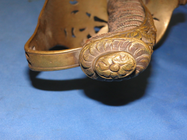 guard are nicely adorned with patterns which include leaves. The pommel has the image of a flower. The front of the