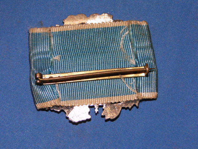 The back of the ribbon is made odf the same material with a metal bracket that has a hinged pin attached. This is how the ribbon is attached to the uniform.