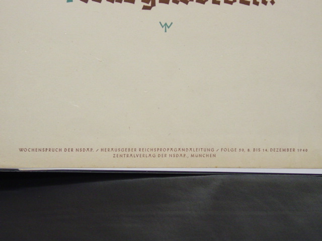 GERMAN WWII NSDAP POSTER - This is a German WWII propaganda poster. As published by the NSDAP (Nazi party). Measuring approximatelly 15 inches high and 11 inches wide. This type of posters were distributed among the population as a way to raise morale. Due to the fragile nature of paper very few samples survived the war.