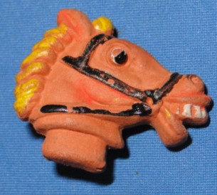 The tinnie featured here is part of a collection of cartoonish ceramic characters. In the shape of a horse head.