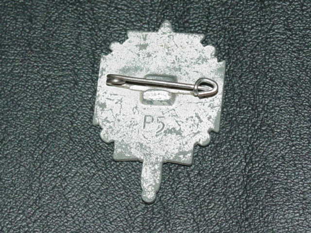 a sword in front of it. Laurels are protruding from each side of the Iron cross. The back has a "P5" marking.