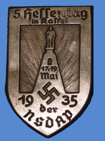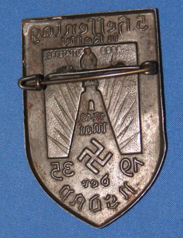 The tinnie featured here is of stamped metal construction. Dated 1935. Commemorating a 1935 NSDAP rally in