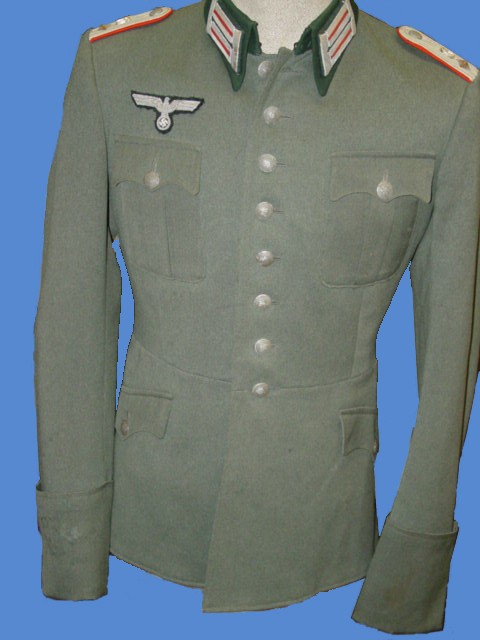 This is a WWII German Army Artillery Officer's uniform. The design consists of four