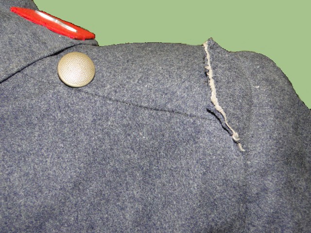 with Green painted buttons. The buttons have pebbling in front. The shoulder boards are missing.