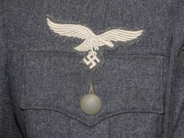 This is a WWII tunic. As issued to members of the Luftwaffe. Of wool construction. Dark Blue color