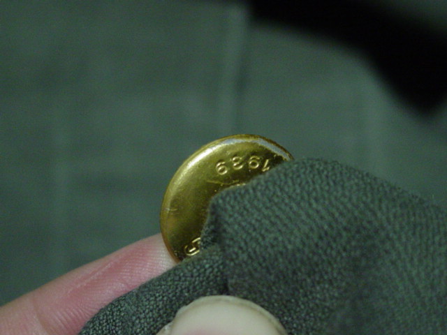 The back of the button has several numbers stamped. The year 1929 is displayed on one