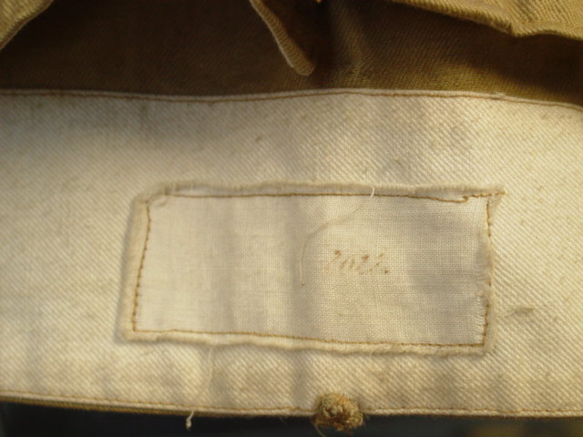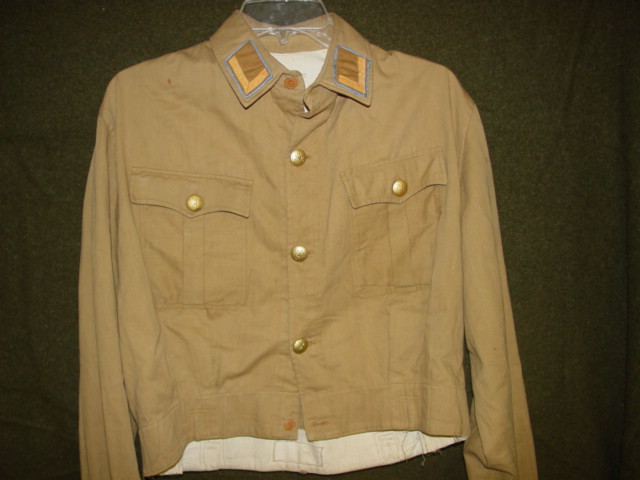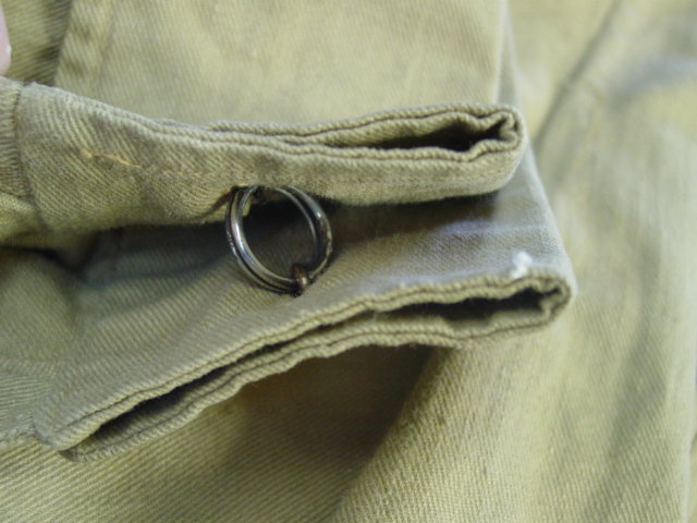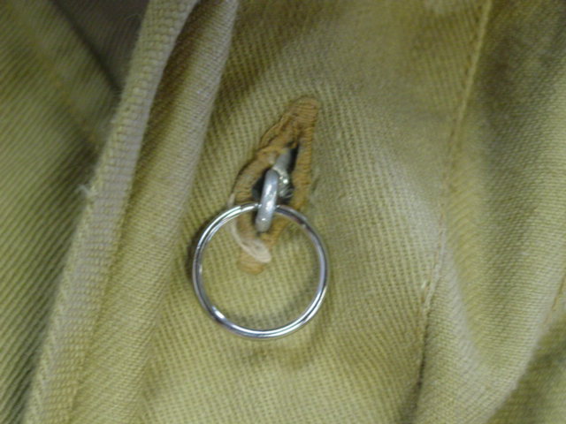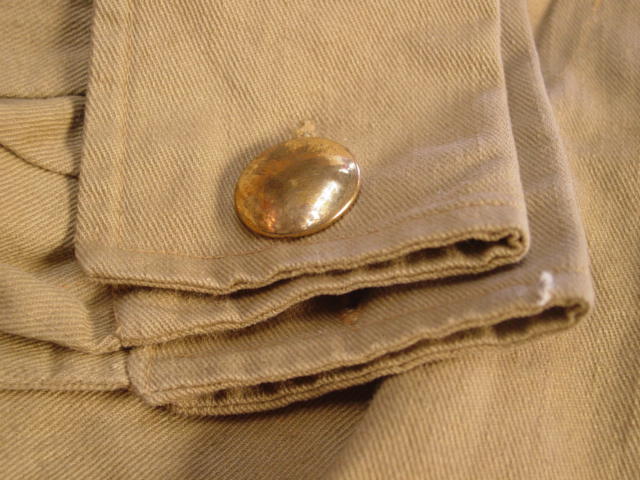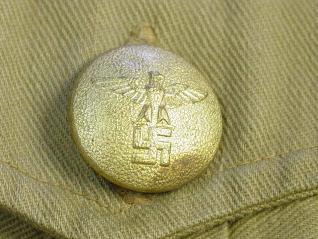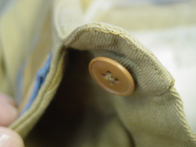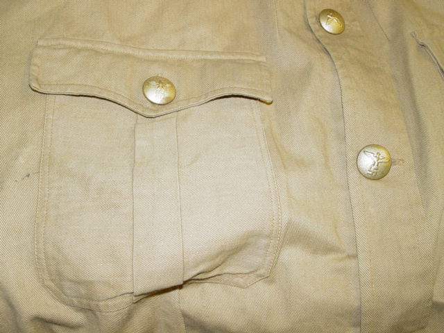 There are two types of buttons found in the uniform. The collar has a brown plastic type button.