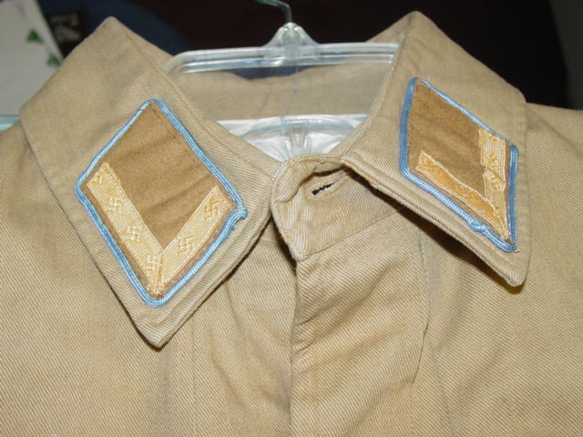 The collar patches consists of an "L" shaped bar with interwoven swastikas. The color