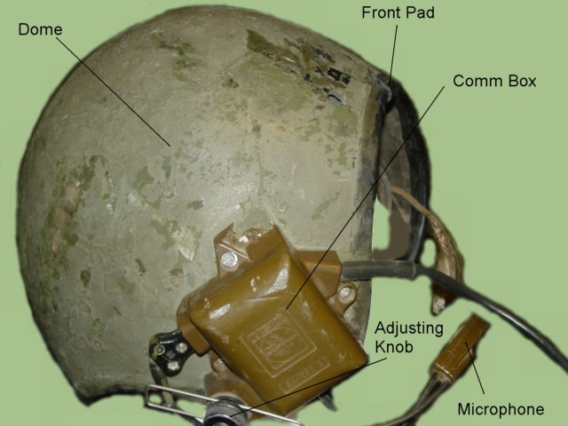 The tanker helmet shown here was used by the US Army during the Vietnam war.  The design was changed to be