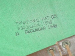 The markings seen here belong to a hat produced in 1948.  Manufactured by the International hat company.