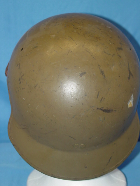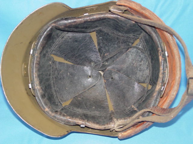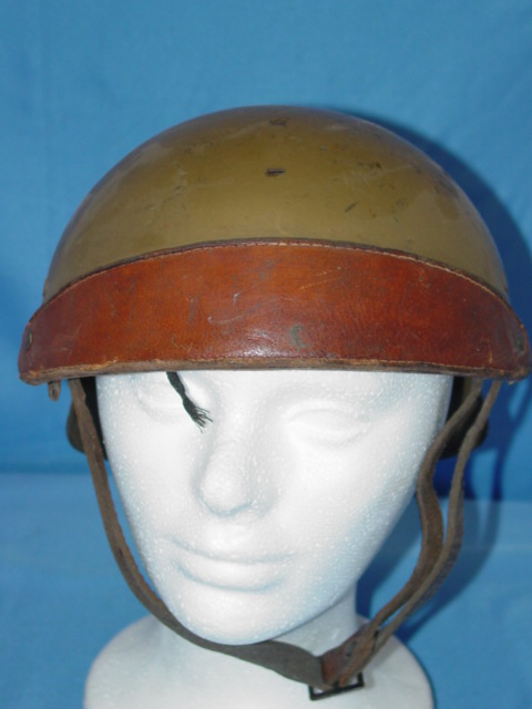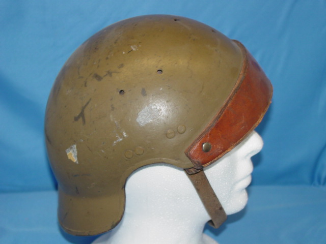 This is a a fine example of a WWII anti-aircraft battery helmet. The front contains a leather