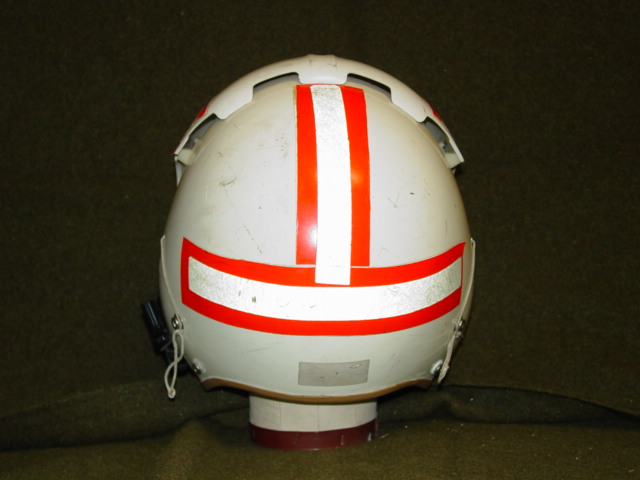The body of the helmet is white with orange stripes. It is customary for pilots to adorn their