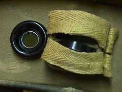 The binoculars had a brown leather strap so the soldier could wear them around his neck. Markings