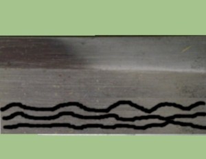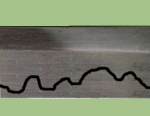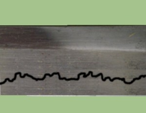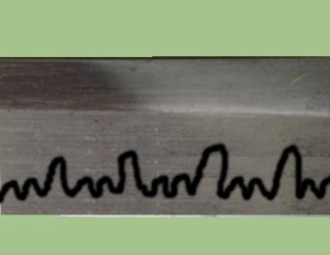 This type of sword Hamon is composed of a series of small bumps grouped into sections. The size of the
