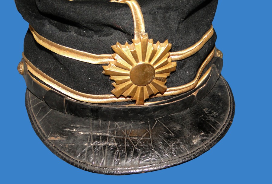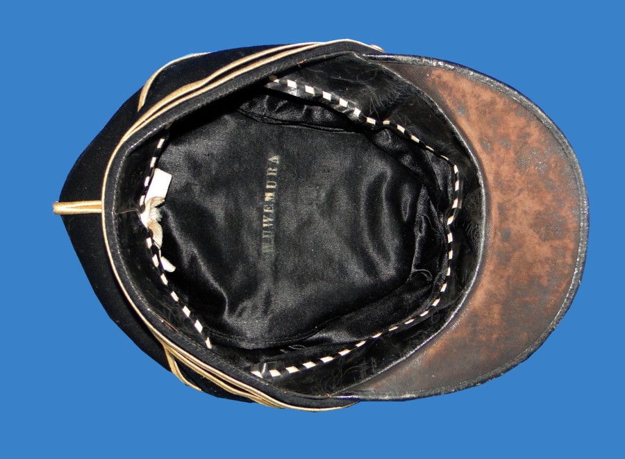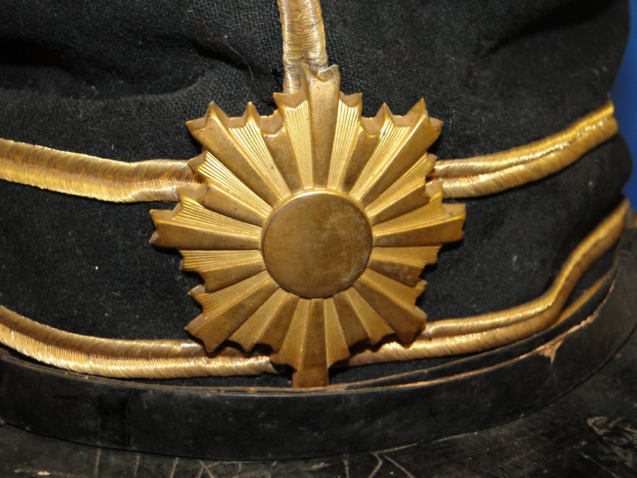 This is a WWII Japanese navy officer dress hat. In very good condition. Japanese helmets are hard to find because most of them were destroyed after the war. Some of them were thrown into the ocean while others were melted in order to reuse the steel. Most of the hats available today in the United States were brought back by GI's as war souvenirs.