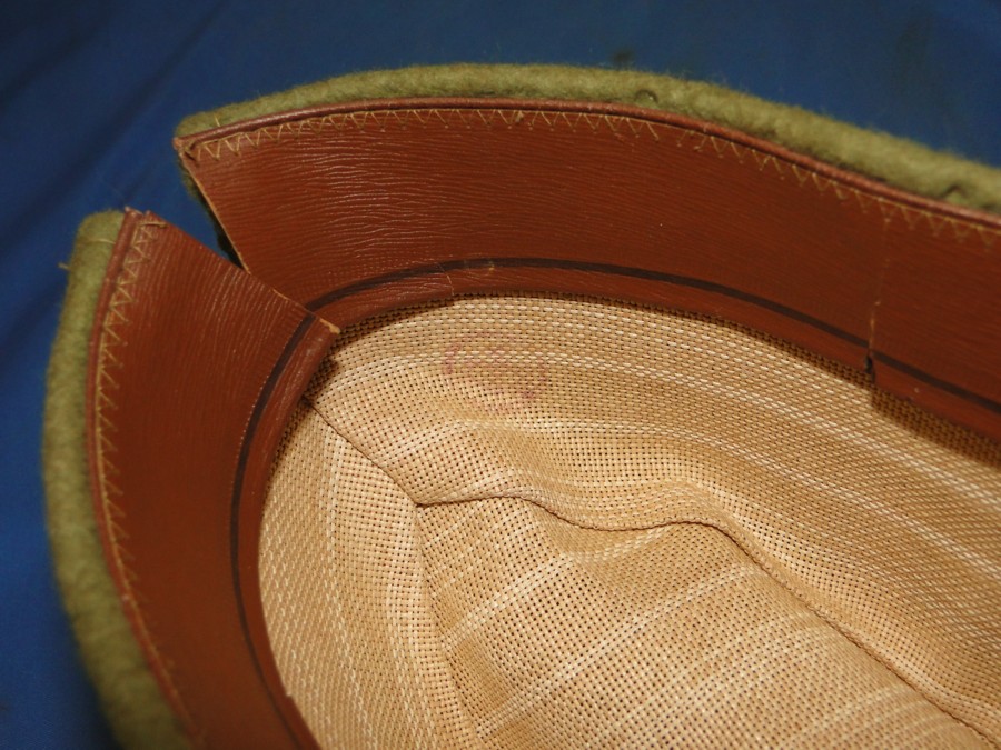 A drak blue pseudo chin strap is done in dark wool and is sewn to the sides. No markings are found on the inside.