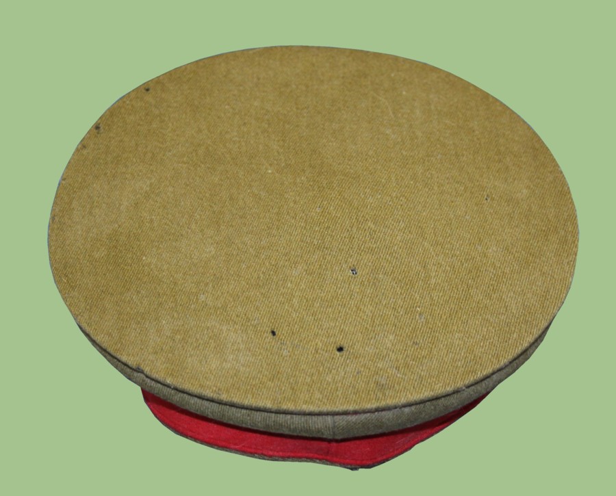 The design of the hat consists of an Olive Drab wool body. Two ventilation gromets found on each side. Mid-body is of red color.