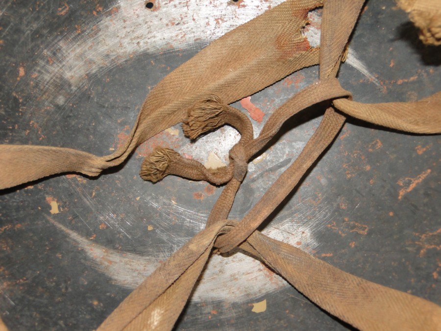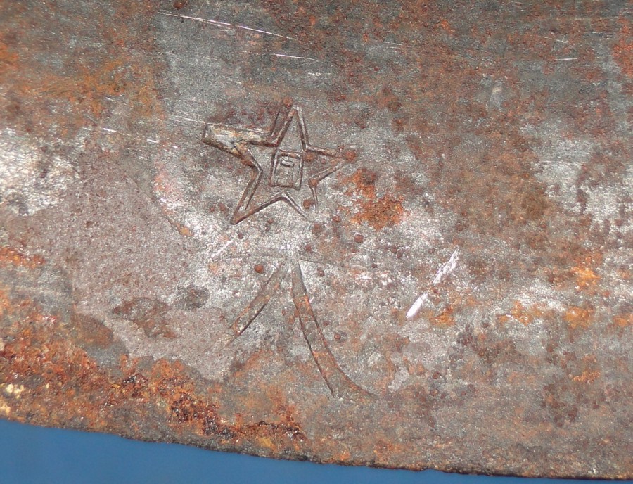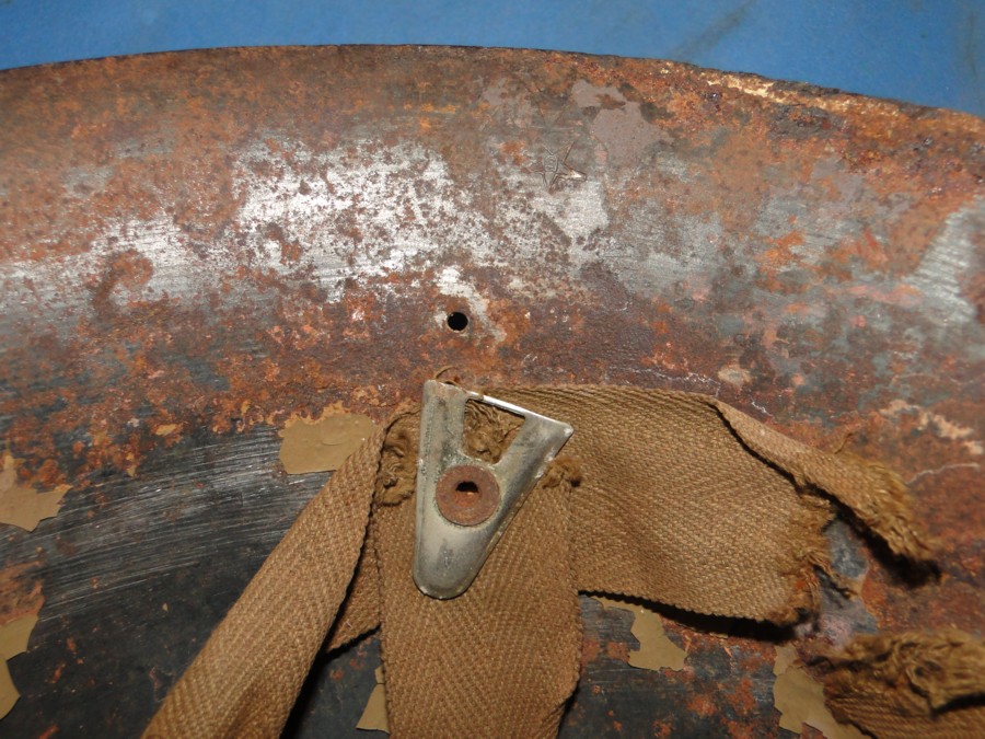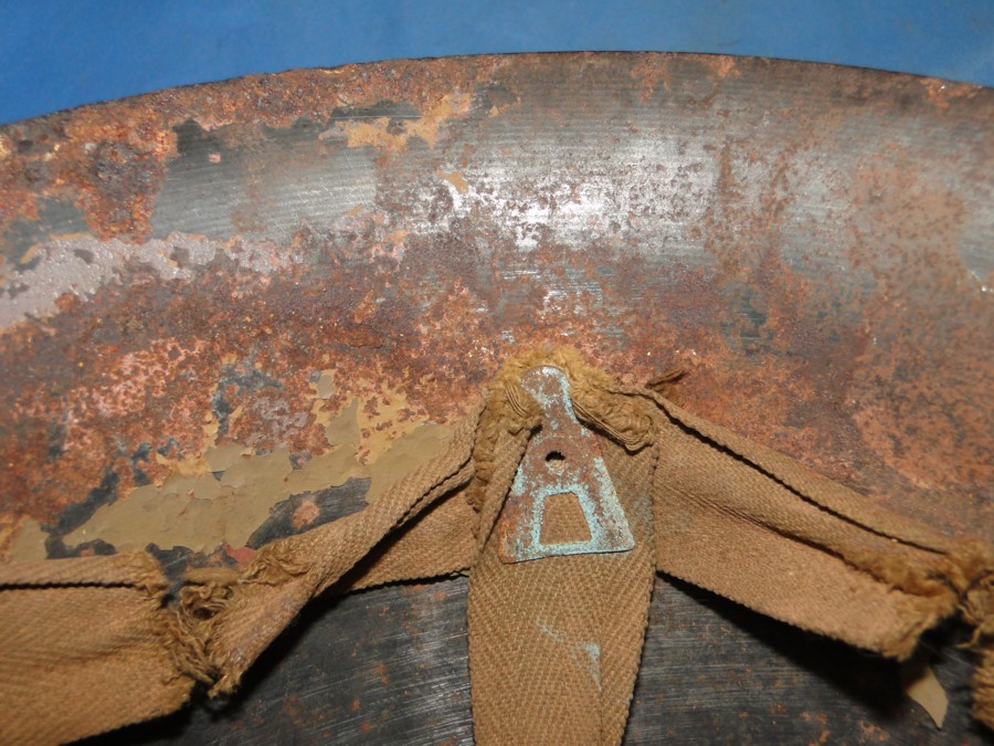 The army helmet is marked in the inside of the main body with an embossed star and a Japanese character. A fair percentage