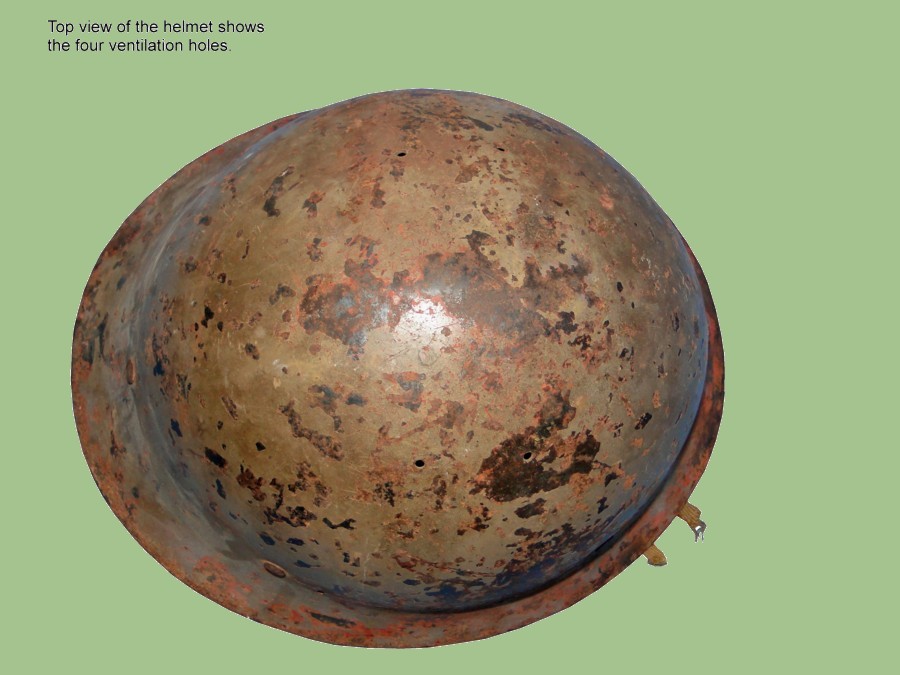 The design of the helmet consists of a metal shell. Four ventilation holes are found on the top. Rivets are employed to