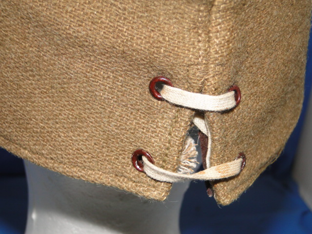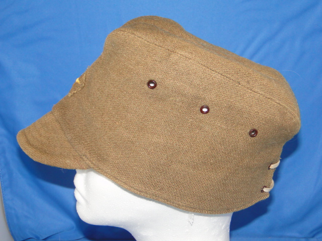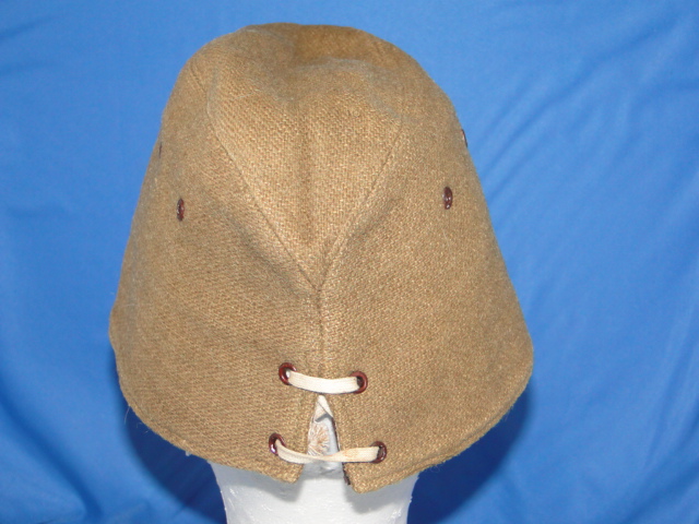 The design of the hat consists of an Olive Drab wool body. Three ventilation gromets found on each side. Mid-body is of red color.