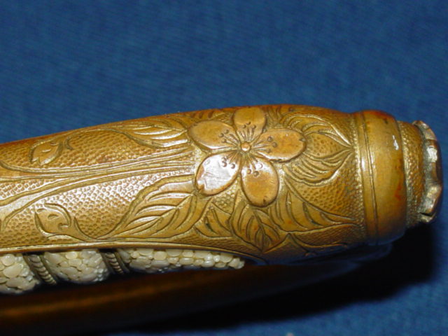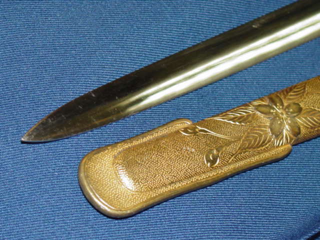 Many WWII Japanese edge weapons are currently reproduced. It is becoming more difficult to be able to tell the fake ones from the real ones because the quality of the reproductions is improving. The collector must become familiarized with the construction style and materials employed in the manufacturing of this item. Attention to the details is critical in order to be able to determine the authenticity of the collectible.