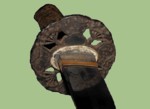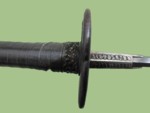 shortened. Single hole. Scabbard wrapped in brown leather.