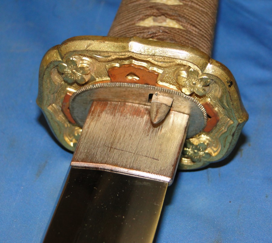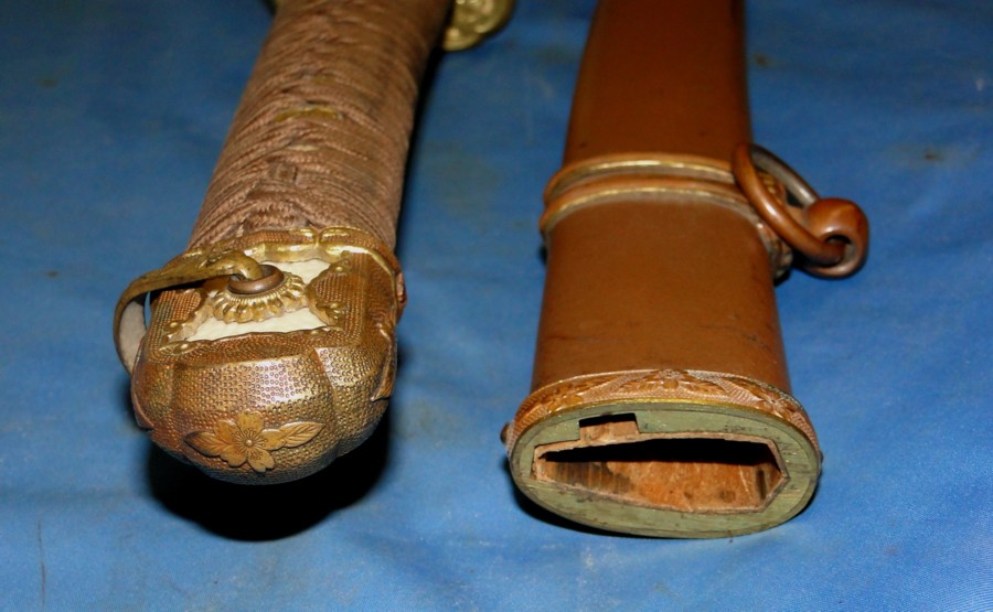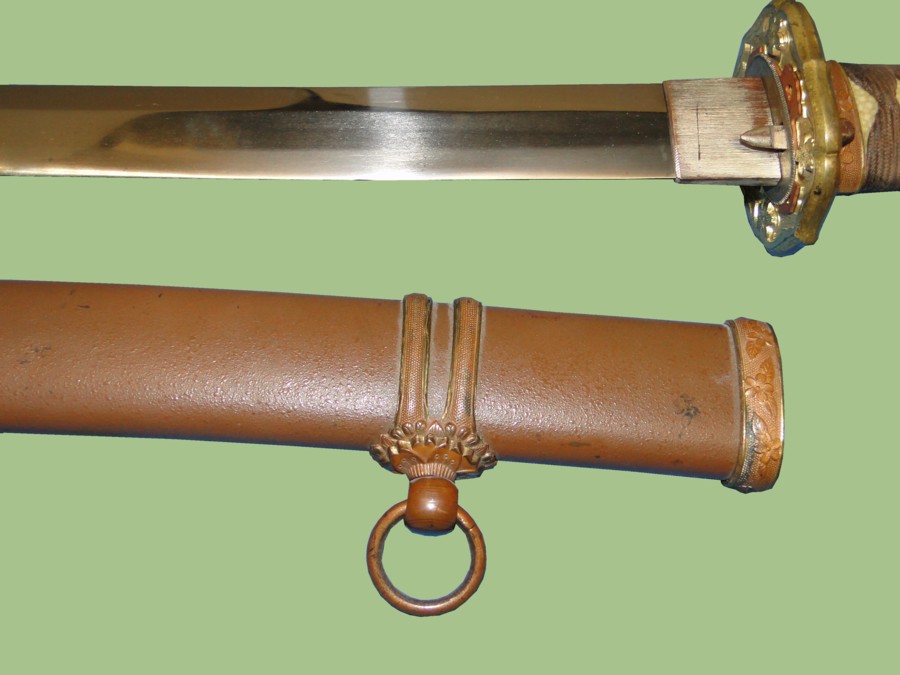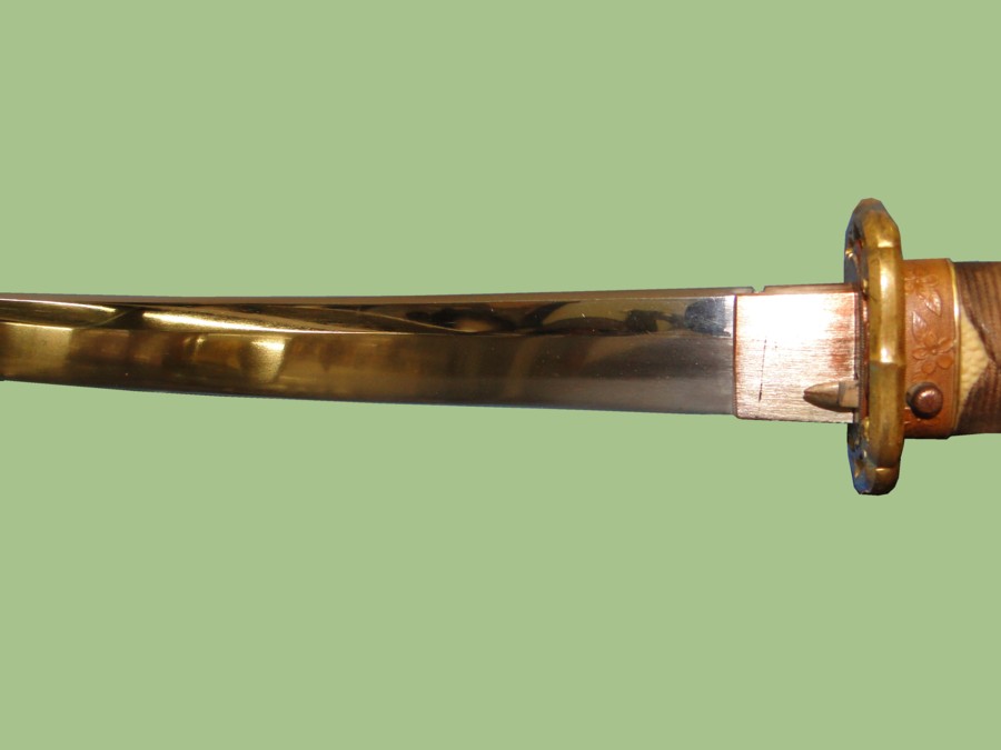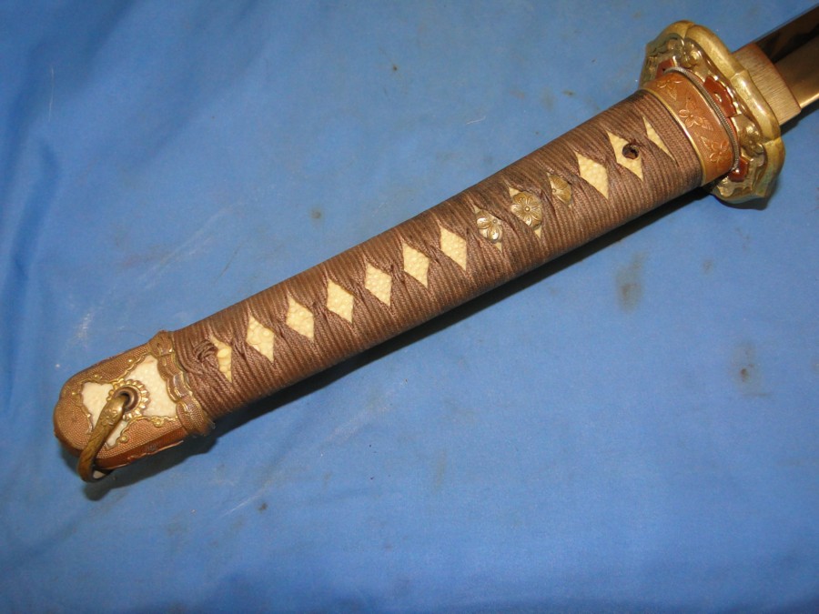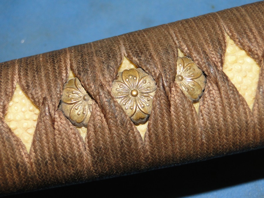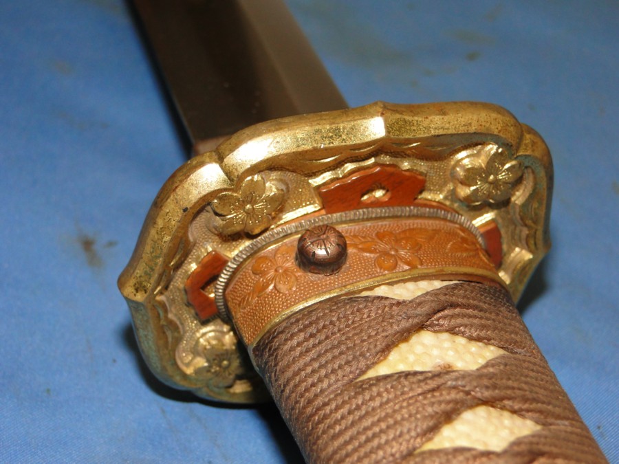 later war manufacturing. The Tsuba has four Chrysanthemum flowers. All fittings on this sword
