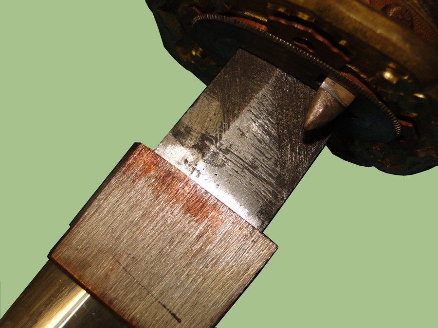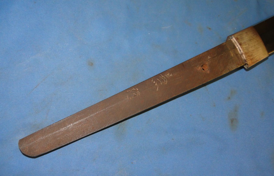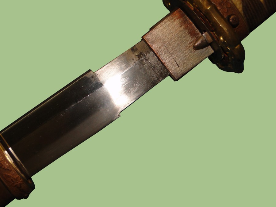 This picture shows the start of the tang. It also displays one side of the Habaki.