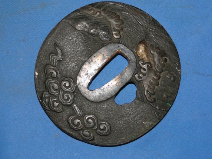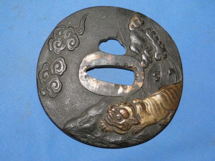 The Tsuba is very nice. It has a cloud and ocean background with a golden colored tiger on one