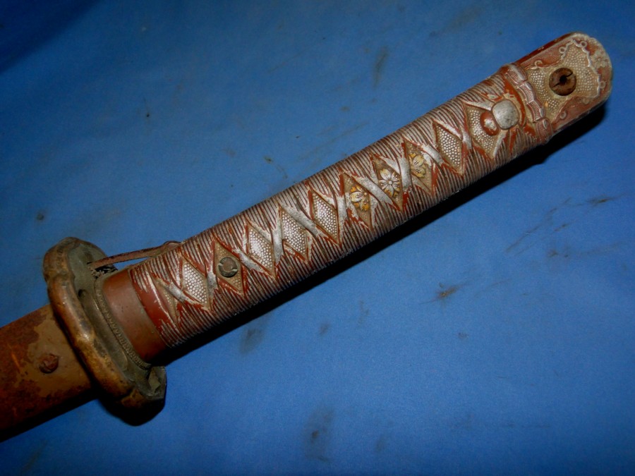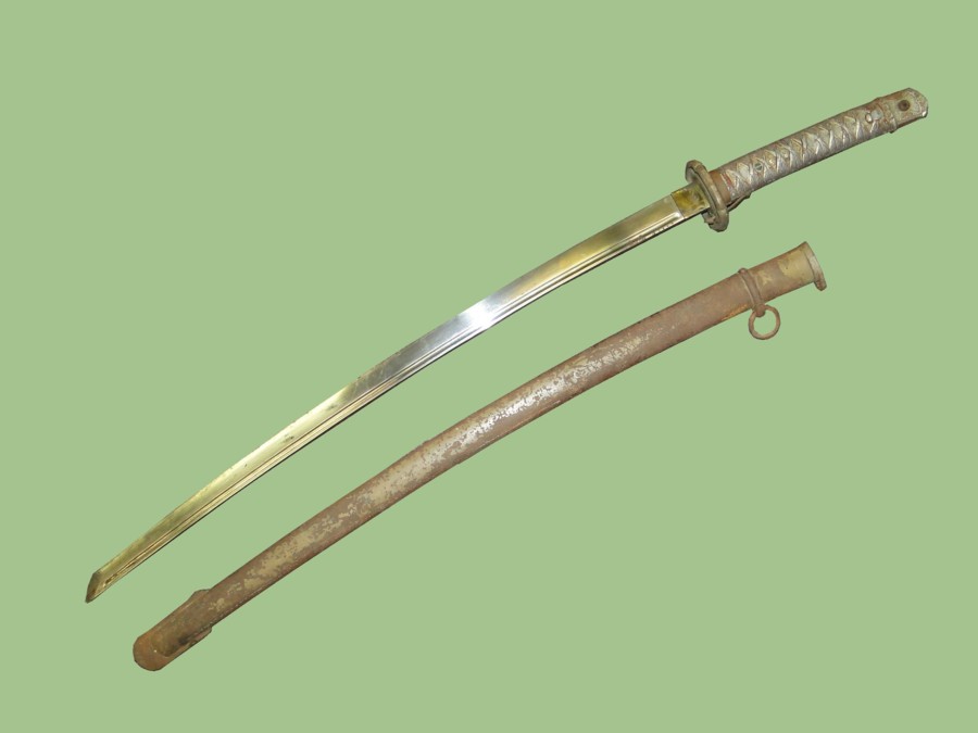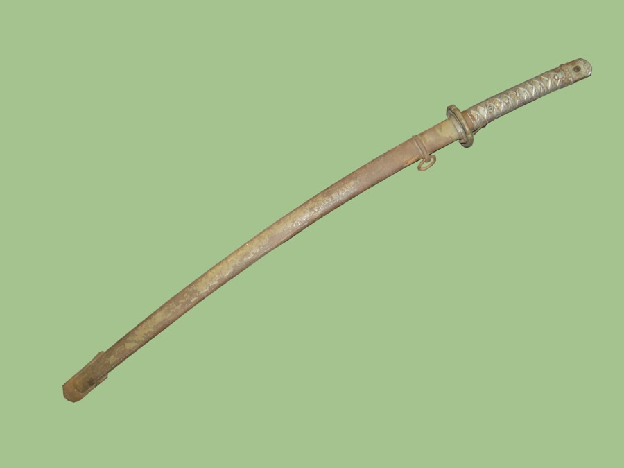 This is a Japanese Samurai sword. NCO type. As issued during WWII. The handle is made as a single aluminum piece. The