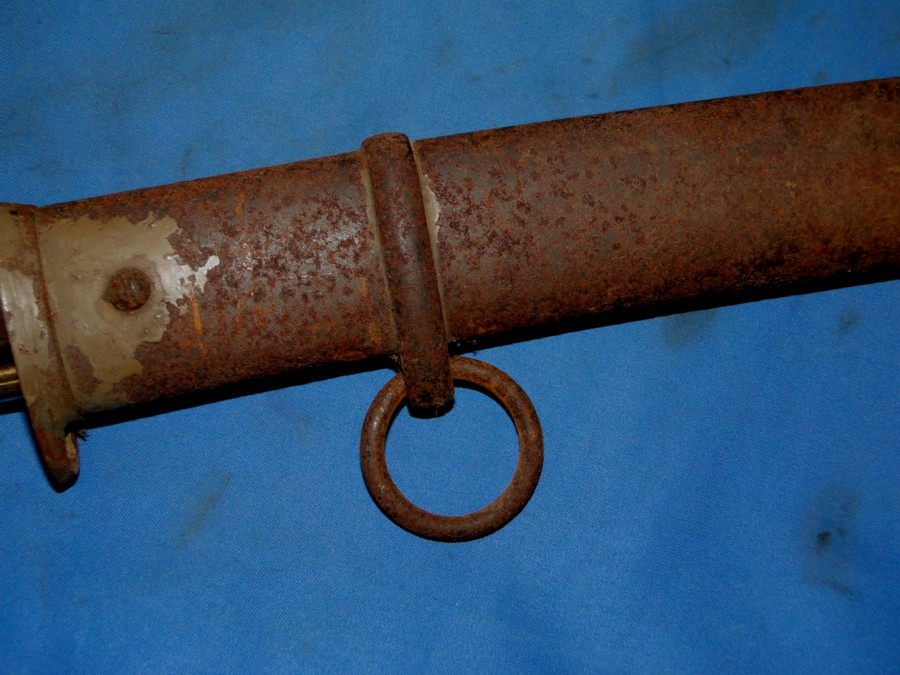 The Tsuba is of earlier construction. Hollowed out pattern. The pommel is missing the lanyard loop. About 50% of