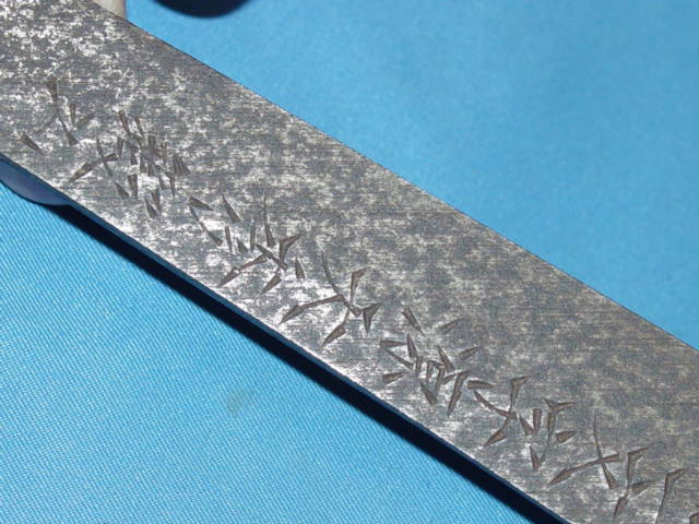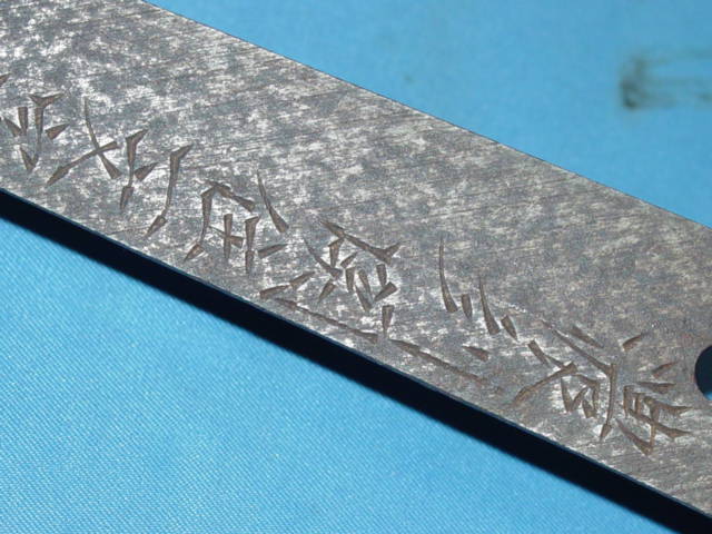 One side of the tang has been signed. The other side is blank. The end of the tang is rounded. The signature is
