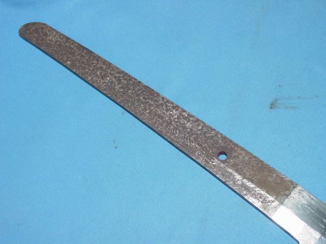 The tang of the sword shows aging. A single hole near the start of it has been drilled. This is where the handle pin